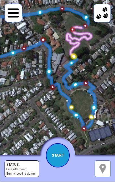 One hot afternoon Dr Truna and I took Kit down to the Brisbane suburb of Milton for a walk around the local parks. Using the Dog Walks app we captured all GPS data from our walk. We also flagged on the map whenever Kit needed to pee on a post, sniffed a nearby flower, or whenever we took him off the lead. The data was then exported from the app as GPX while Dr Truna gave Kit a big dish of water and treats for his efforts.