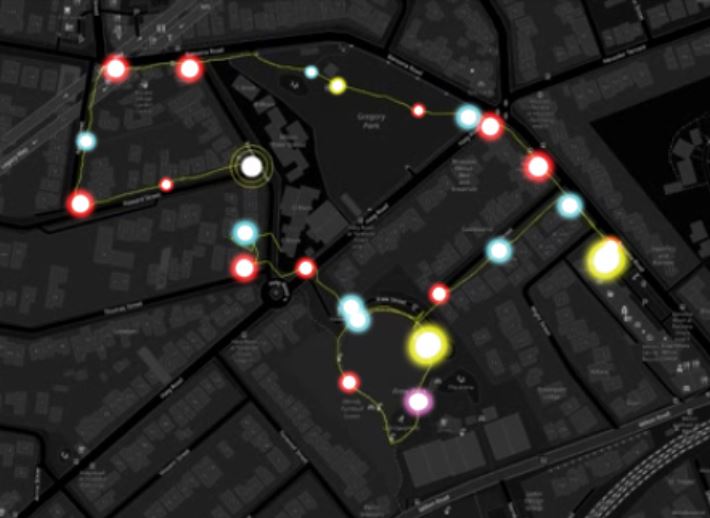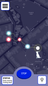 This second prototype had more of a focus on visualising walk data over the previous phase. For this prototype, we used data visualisation app RunParticles and Adobe Premiere Pro, data from the Dog Walks app, and of course our trusty four-legged companion Kit.
