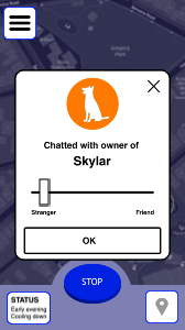 - Visualise how a user would contact other dog walking peers.