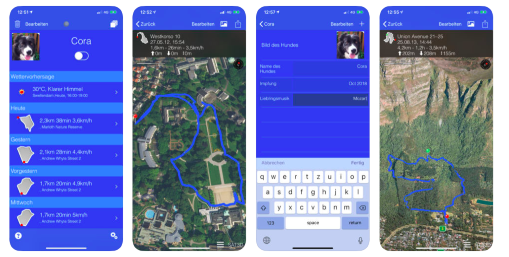 dogwalk lacks the quick and easy specific waypoint function of Tractive but does allow a variety of different waypoint experiences to be added. The GPX file export option means that these can then be transferred to other apps and treated.